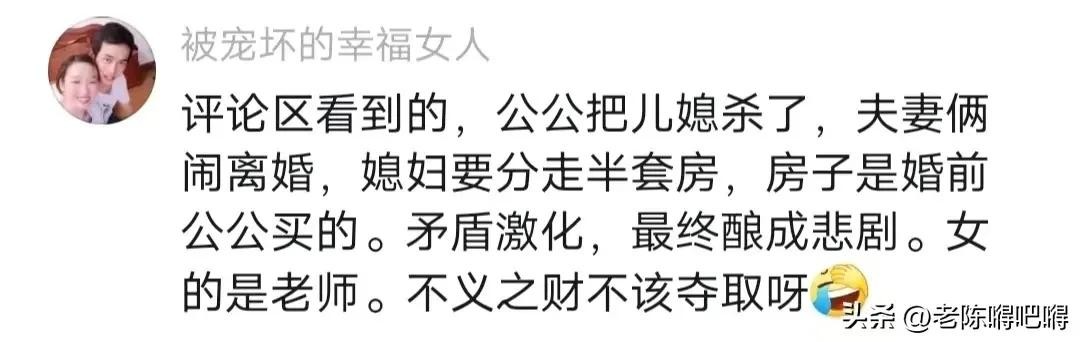 也有网友透露,据说是在闹离婚期间,女子的哥哥,把公公给打了,而且打住院了。