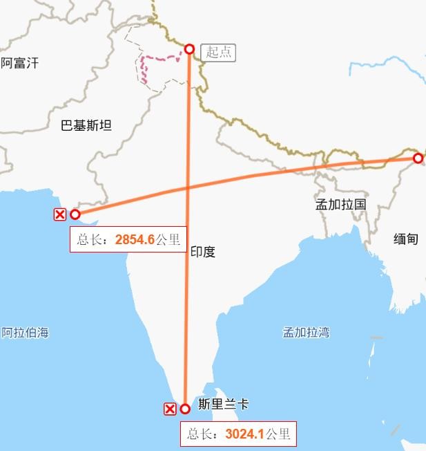 注:北京到三亚直线距离是2500公里;上海到拉萨是 2900公里。