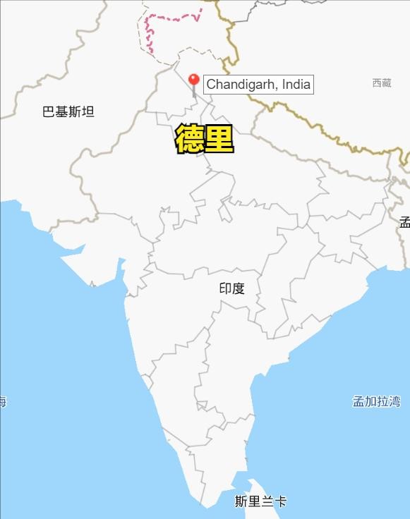 Chandigarh 位置:德里往北200多公里,距离中国不远。