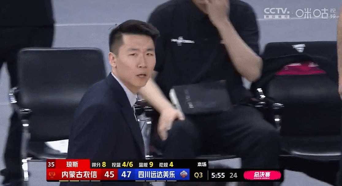 四川队主教练杨毅气定神闲,与杨赞形成鲜明对比