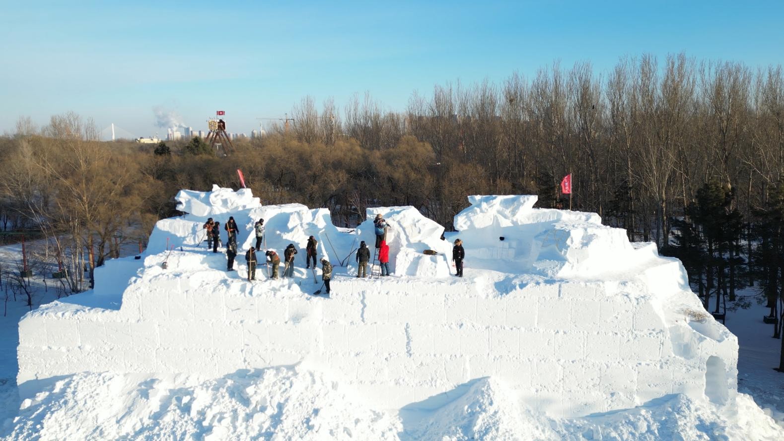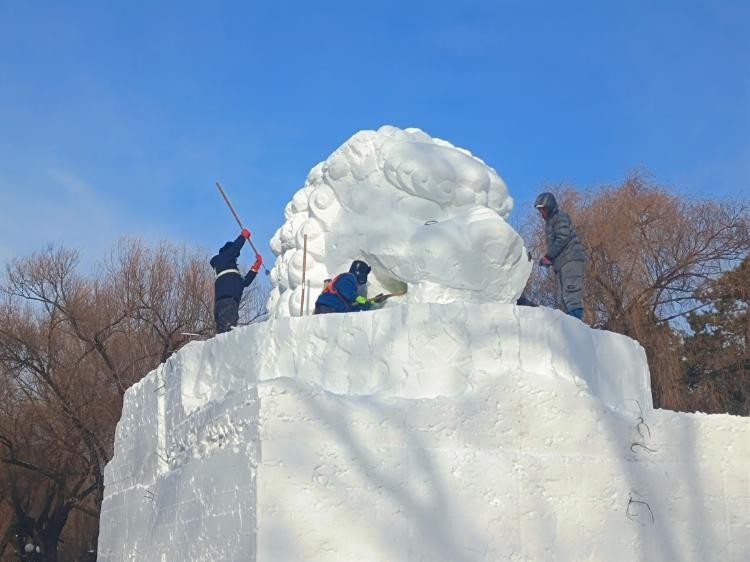 太阳岛雪博会新进展!“雪狮子”“八骏踏雪”现雏形,“青花瓷”待上色
