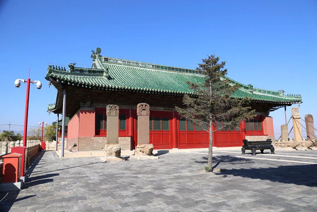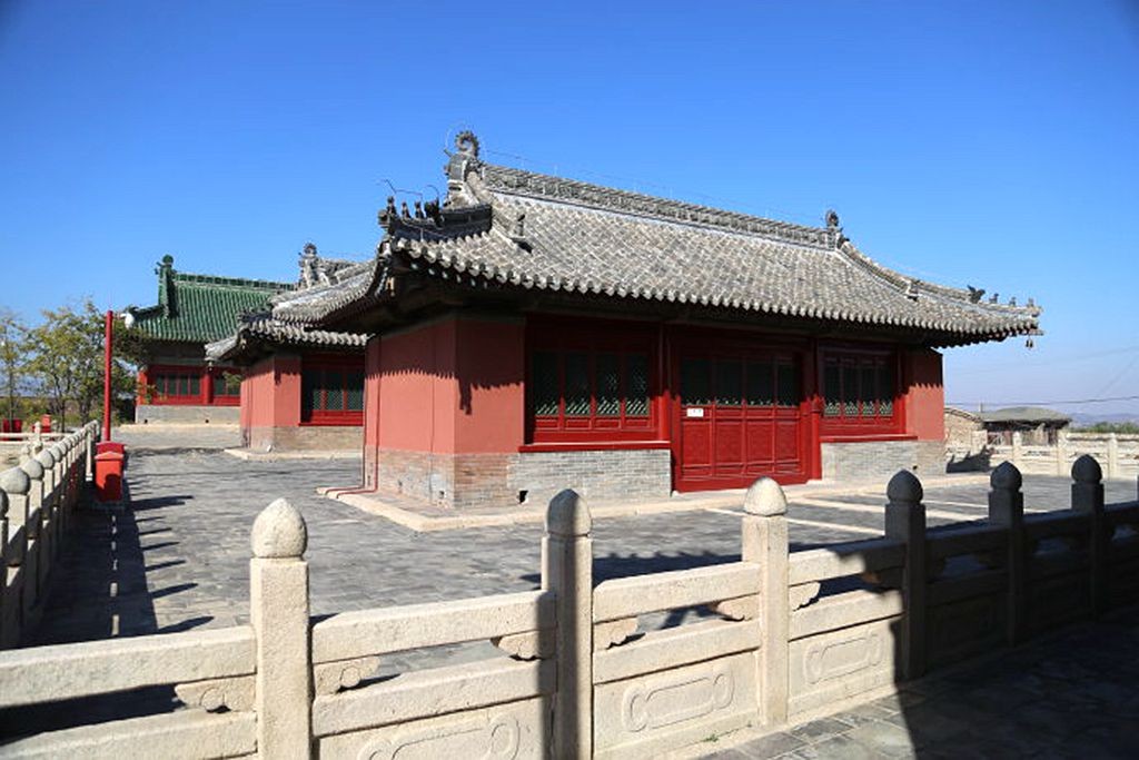 大殿的后面有三间更衣殿,是祭祖者入大殿朝拜前更换衣服的地方。再后有三间内香殿,是存放地方官员祭品和香火的地方。最后的寝宫,是山神的内宅,所以规模仅次于大殿。清康熙帝敬献的御匾“郁葱佳气”悬挂于殿眉的正中,大殿的周围以白色的石栏围绕。