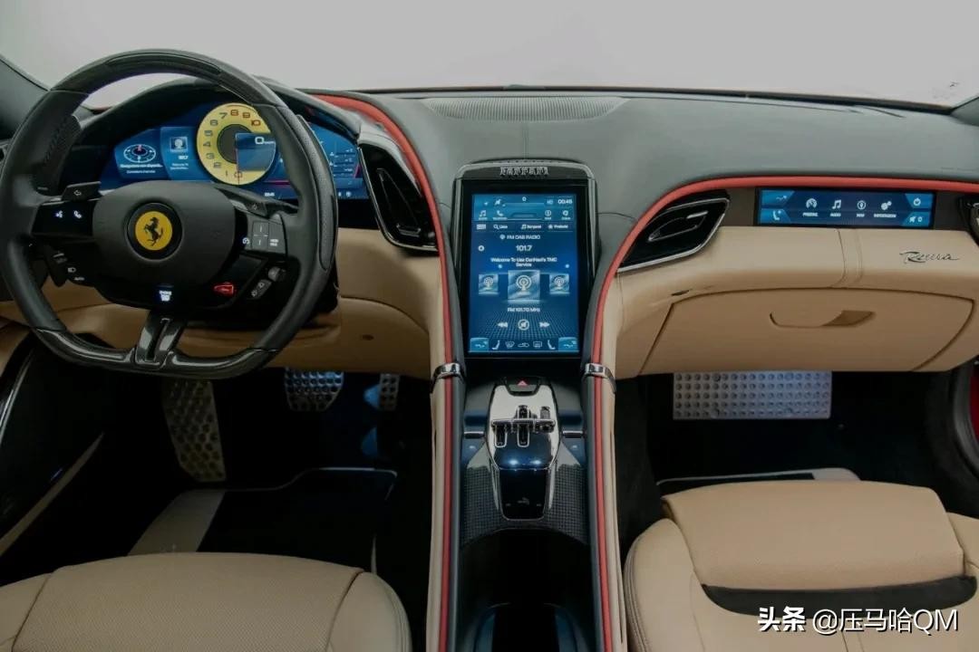 单从外观造型来说,这是妥妥的跑车啊,但是这前脸造型看起来怪怪的,但是依旧能接受,毕竟它也是高级的法拉利啊,它叫做Roma,大灯缺少了家族式设计,除了车标暂时不能从另一个地方认出它。