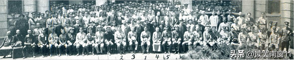 图中1为蔣介石、2为鲁涤平、3为贺国光、4为邵力子、5为何健、6为刘文岛。拍摄时间为1929年7月。