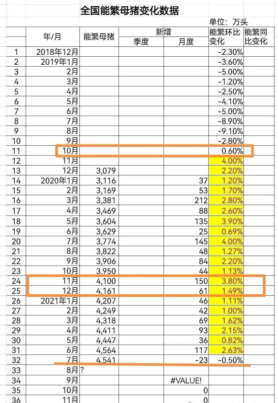 这是根据官方给出的能繁母猪数据。