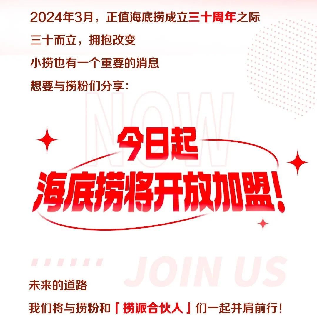 海底捞于2024年3月4日发布公告称,将推行海底捞餐厅的加盟特许经营模式,以多元经营模式进一步推动餐厅网络的扩张步伐。
