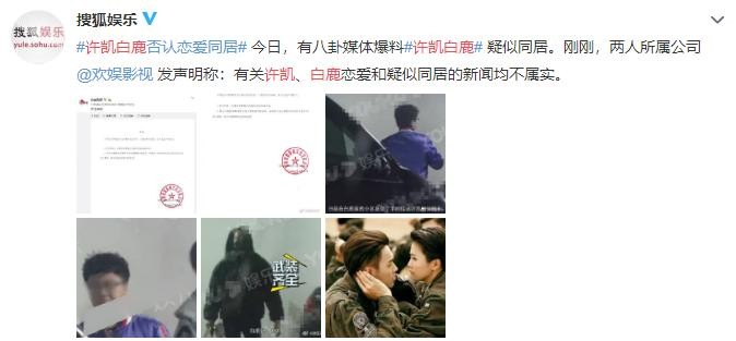 许凯白鹿被曝恋情已同居 欢娱发声明否认:均属不实