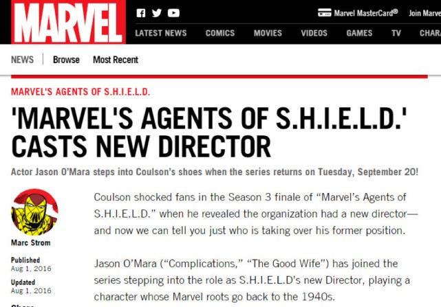 昨天,Marvel在官网上宣布,神盾局将迎来新局长,不再由之前的科尔森担任。