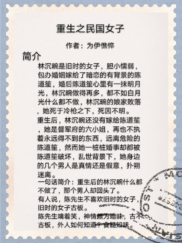 今天给大家分享四部超好看的民国重生文,小说已完结,HE,姐妹们不容错过哦~