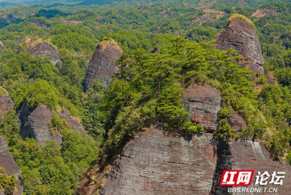 图说:湖南怀化通道县内的“万佛山国家地质公园”,以丹霞地貌为主,具有地质遗迹保护、科学研究、科普教育、旅游观光、休闲度假等多种功能。园内的丹霞峰林峰丛、丹霞赤壁、风化洞穴等广泛发育,成为中国东南部地区白垩纪以来地球演变史的教科书。