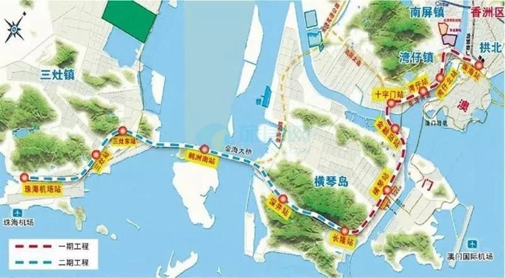 珠机城际:二期项目预计2023年将全线通车,建成后将大大缩短金湾、横琴之间的距离。