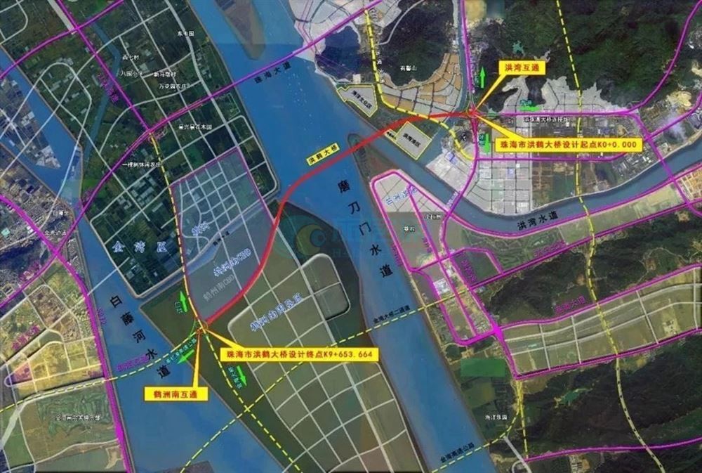 洪鹤大桥:起点位于香洲区南屏镇洪湾,终点与江珠高速延长线及鹤岗高速相交、设鹤洲南互通,被称为连接珠海东西部城区的第三通道。该项目计划2020年建成通车。届时从金湾到拱北,车行时间只需约20分钟。
