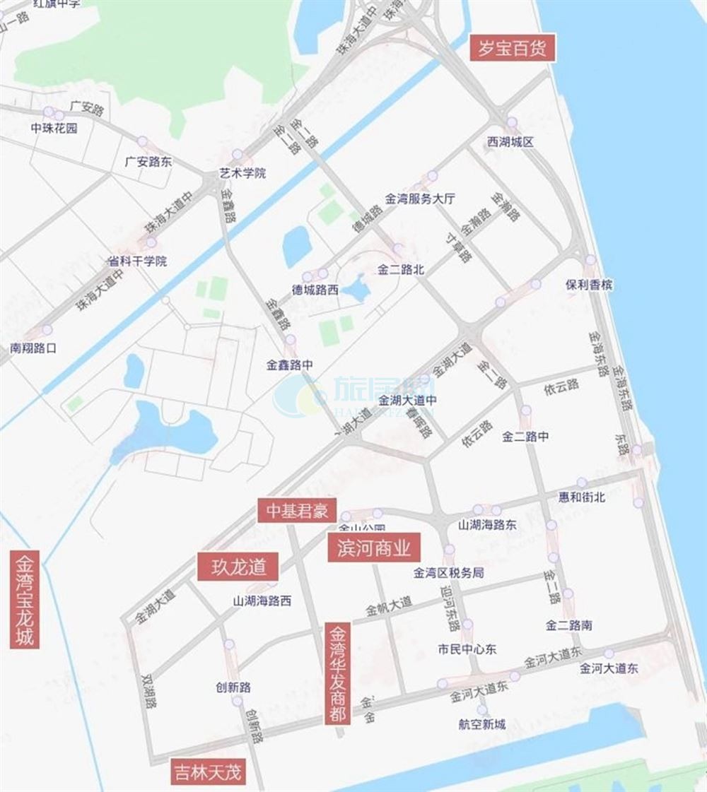金湾片区可以划分为高尔夫片区、航空新城片区、滨海商务片区。