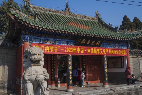 上午十时,岳飞庙大殿前,由当地戏曲演员实景表演的“岳母刺字”节目,更是迎来了游客的阵阵掌声。