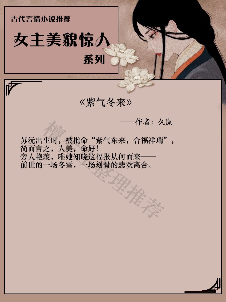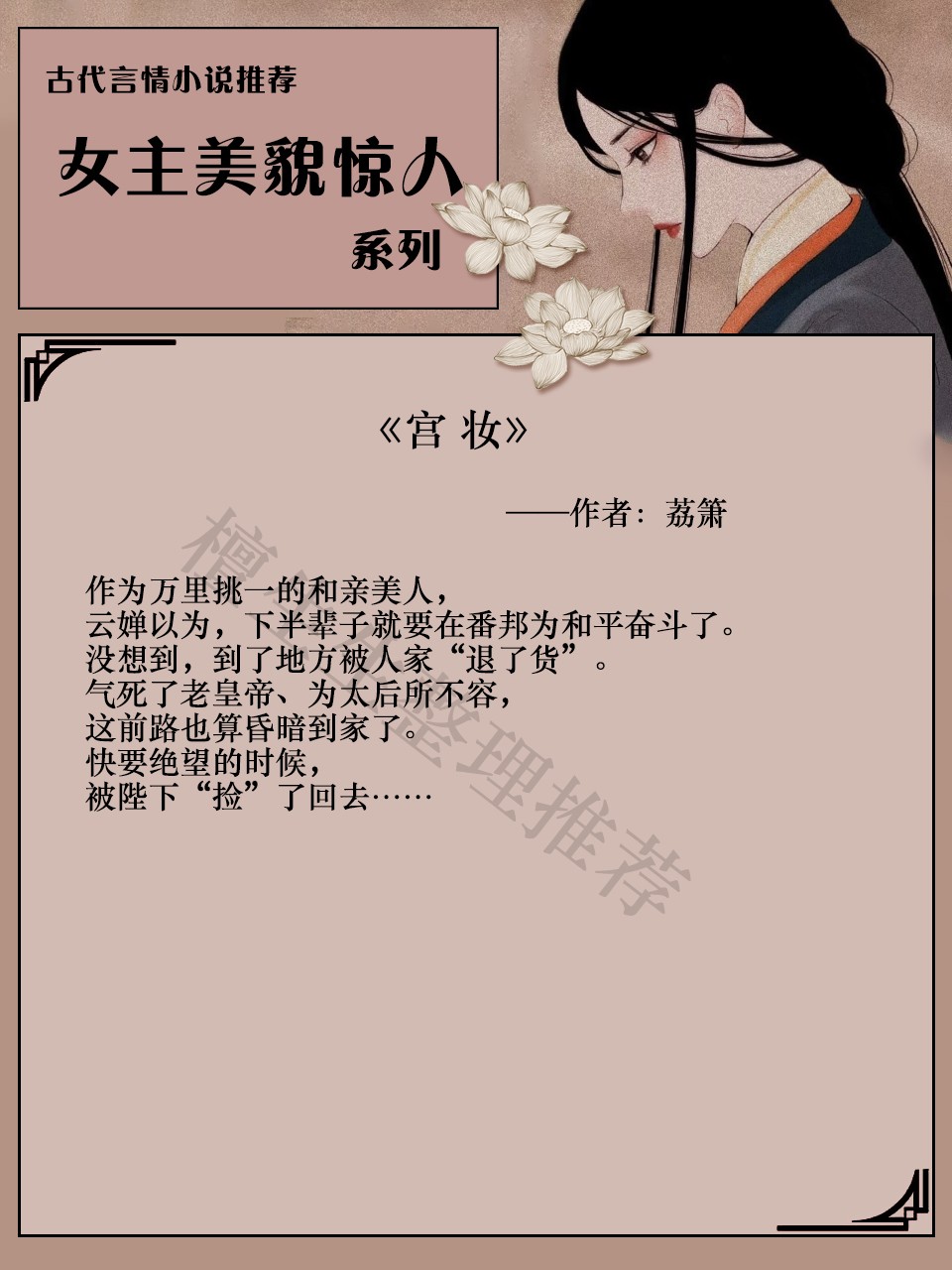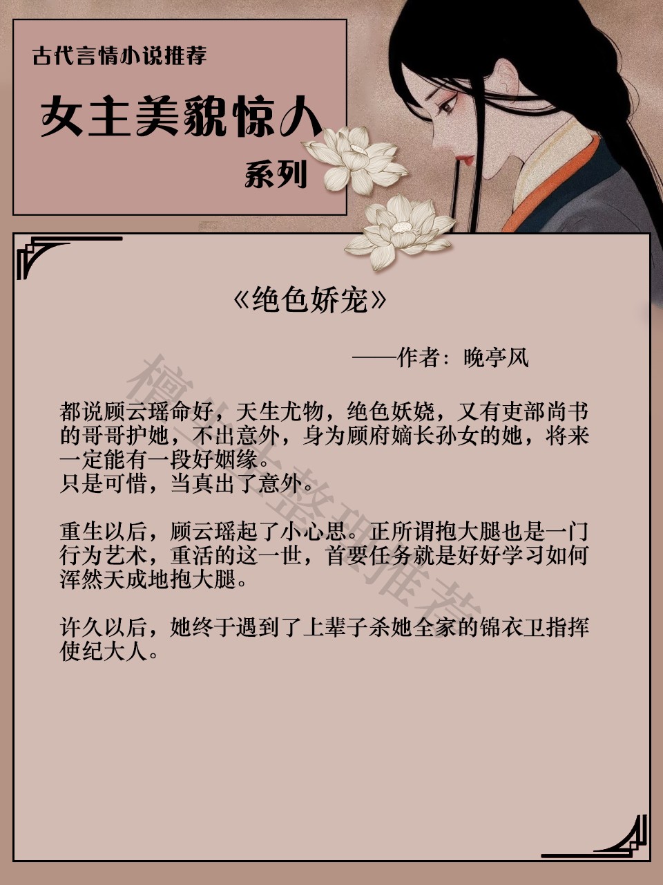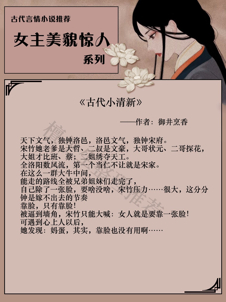 亲们,今天来推一系列女主美貌惊人的古代言情小说吧!