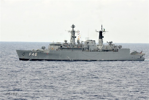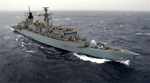 第二个例子是英国的22型大刀级护卫舰,22型共发展了三型,Ⅰ型Ⅱ型装备了六联装“海狼”舰对空导弹发射装置2座、“飞鱼”舰对舰导弹发射装置4座。没有安装主炮,只是安装了“博福斯”40毫米舰炮、20毫米舰炮各两门作为近防武器。
