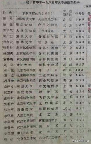 1988年,167名学生考入大学,其中王永新、孙志国考入清华大学:兰爱军、韩志军考入北京大学。