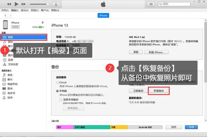 方法二:利用iTunes备份恢复iPhone删除的照片