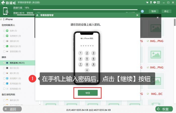 注意:扫描刚开始时手机会弹出密码输入提醒,请不要忽视,否则扫描将无法正常进行。