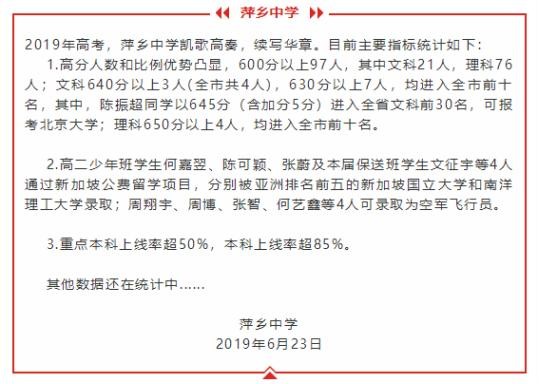 2019年萍乡中学高考喜报