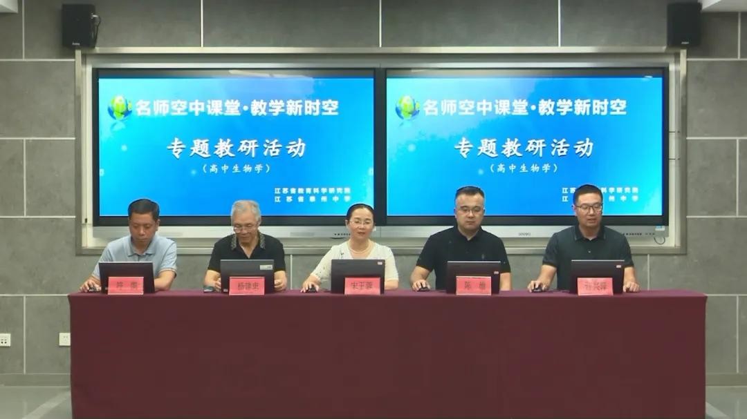 9月27日江苏省名师空中课堂·教学新时空(高中生物)教研活动在江苏省泰州中学举行,本次活动的主题是“体验科学探索的历程,领悟科学研究方法”,活动由江苏省泰州市教育局生物学教研员宋玉蓉主持,邀请了江苏省连云港市教育局生物学教研员陈维、江苏省靖江高级中学杨建忠老师、泰兴市第二高级中学校长符凯参与点评和指导。