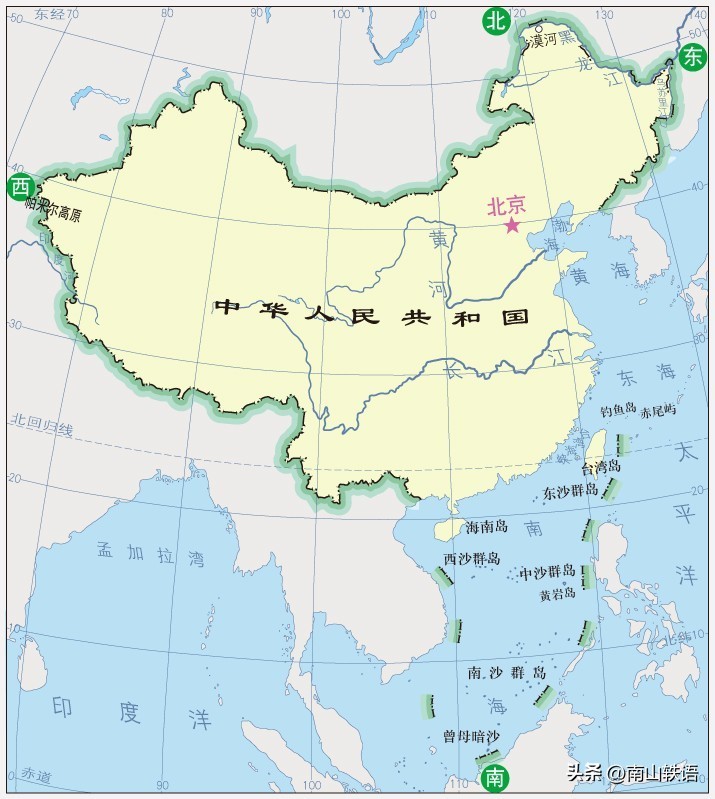 中国版图的形状常被人们比喻为头朝东、尾朝西的昂首挺立的雄鸡。