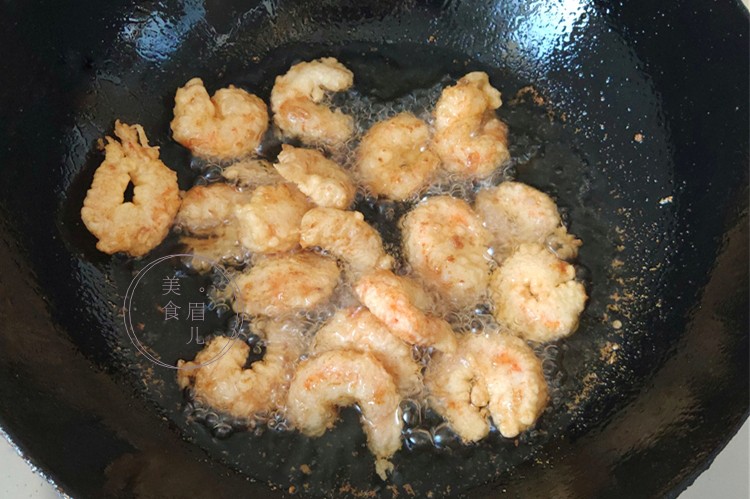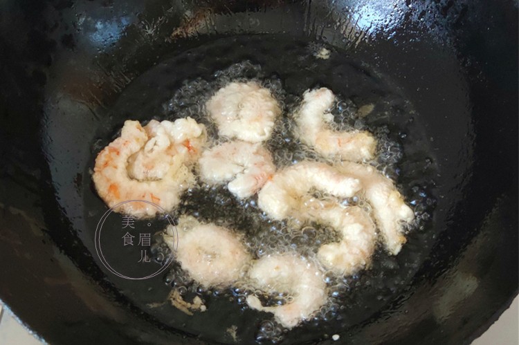 2、炸制虾仁的面糊,用红薯淀粉会使外壳更酥脆,另外想酥脆,复炸也很关键。