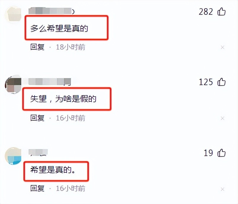 但令人哭笑不得的是,还有不少人知道这是谣言后,却纷纷留言:白高兴一场了,希望这件事是真的。