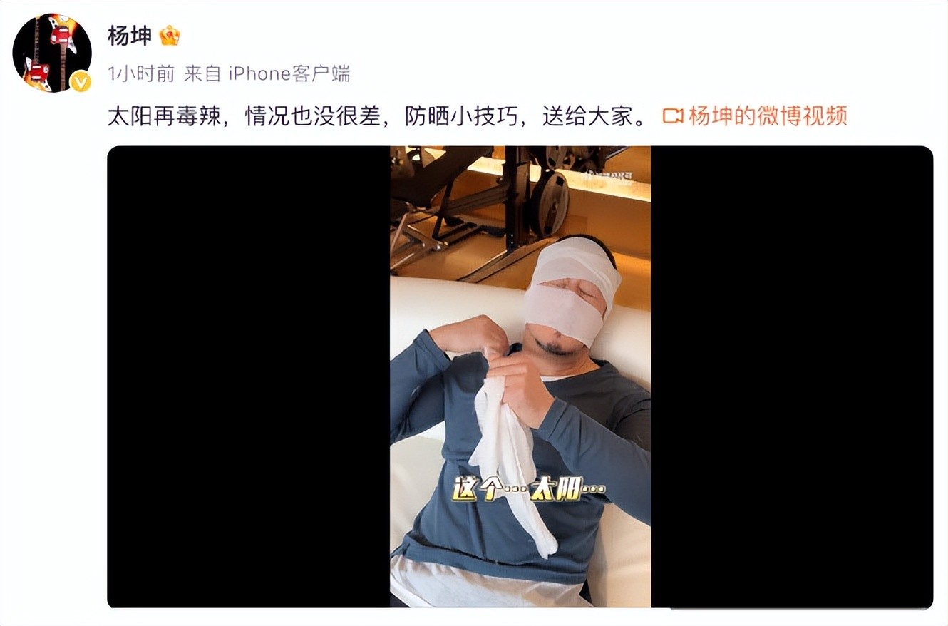 很快,杨坤就自己把绷带解开了,解开后可以看到,他的脸上没有任何的伤痕,同时他自己还若有其事地说自己是被太阳晒伤了,还给大家分享防晒小技巧。