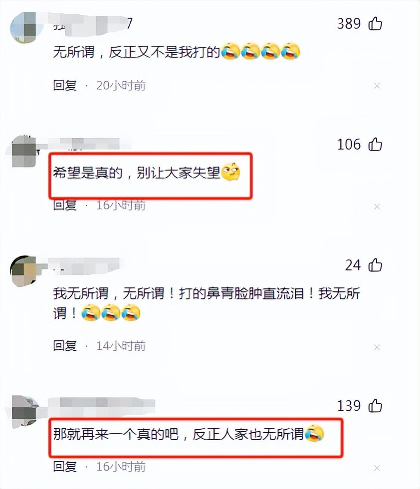 然而令人没想到的是,在这评论区中,居然还有一部分的网友表示了失望,他们失望于这件事居然不是真的,杨坤没有被打。