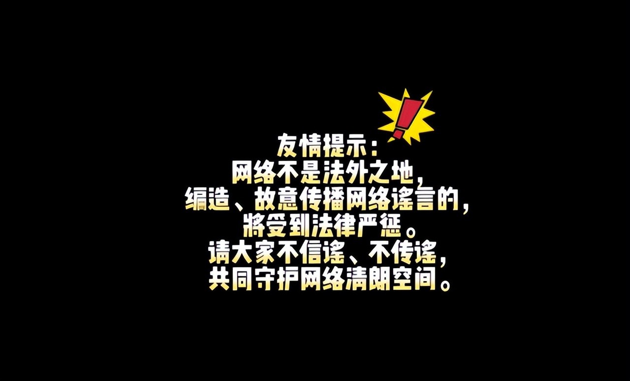 在这段视频的最后,还有着几行“网络不是法外之地”“不信谣,不传谣”这样的警示字幕,从正面回应了网上流传的那些消息都是谣言。