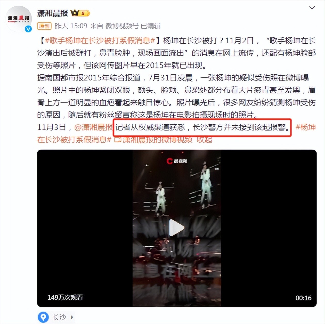 最终真相也很快被扒了出来,网上流传的“杨坤被打”消息纯属谣言,那张鼻青脸肿的照片已经是8年前的老照片了。