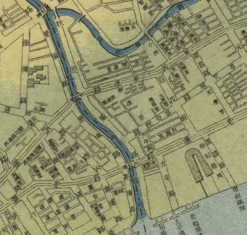 如今在长治路桥一带,比外虹桥历史更悠久,始建于乾隆年代。桥东堍原有长治电影院,桥西附近房屋多旧式里弄。