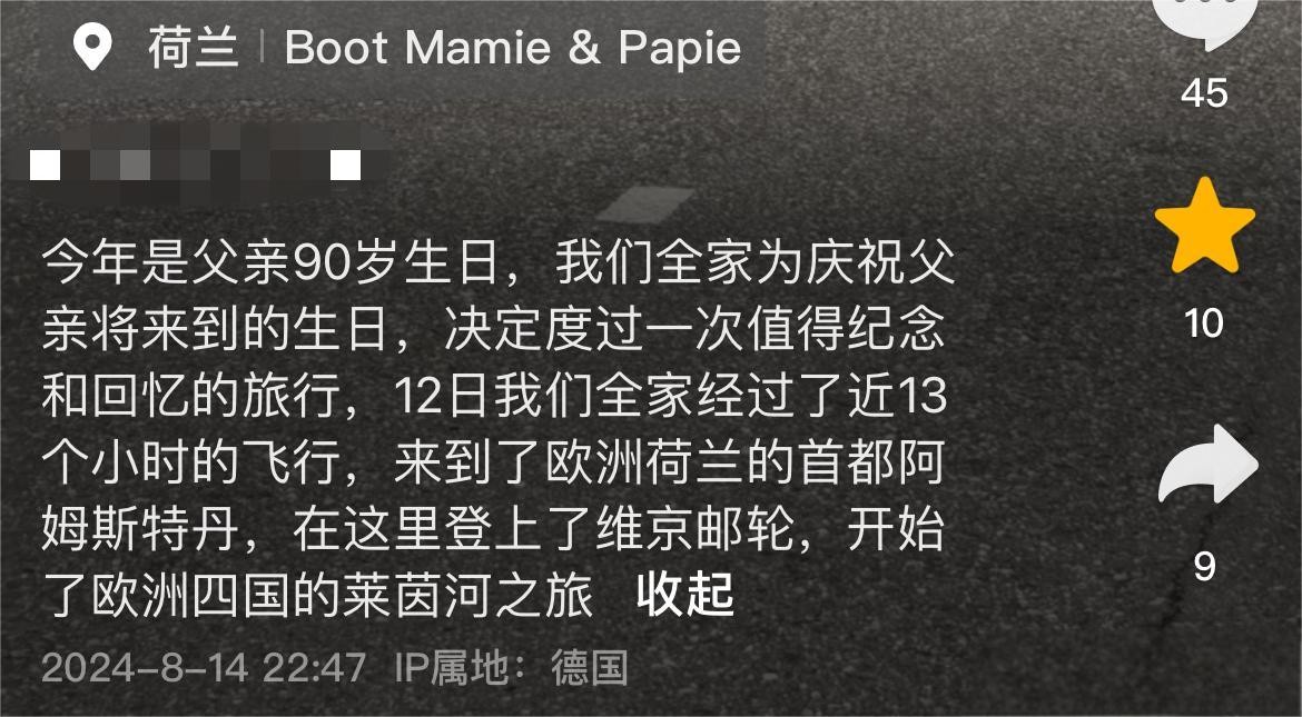 8月16日牛犇的小儿子王侃在社交平台上分享了自己出国游玩的生活。