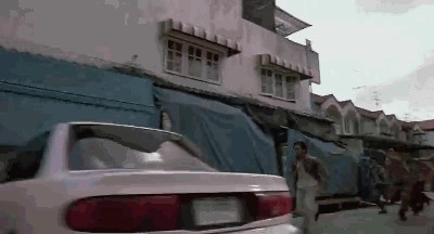 最让别人学不来的其实是他在电影中几乎不用特技,不用替身,所有动作均是亲力亲为,像下面这个跳车的场面完全是真的跳,光是这点有几个能做到?