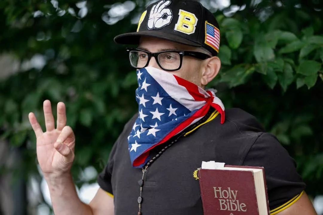2019年8月,极右翼团体“骄傲的男孩”成员在俄勒冈州波特兰市的一次集会上,也做出「OK」手势。