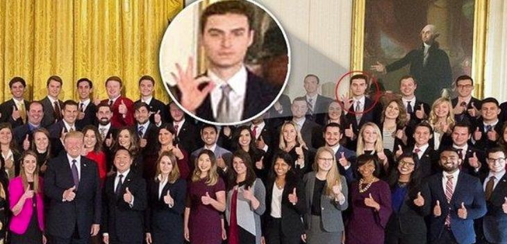2017年,一位白宫男性实习生在与总统特朗普拍摄大合照中,举起了「OK」手势招来外界猛烈批评。这名实习生事后就此行为致歉,称认为自己当时的行为很愚蠢。