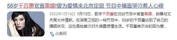 北青网——58岁千百惠官宣离婚!曾为爱情来北京定居 节目中掩面哭泣惹人心疼