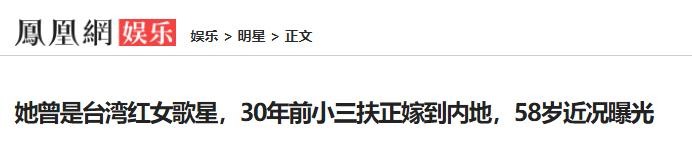 凤凰网娱乐——曾是台湾当红女歌星,30年前小三扶正嫁到内地,58岁近况曝光