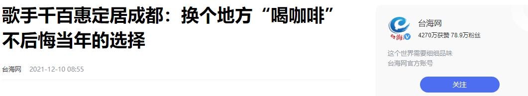 台海网——歌手千百惠定居成都:换个地方“喝咖啡” 不后悔当年的选择