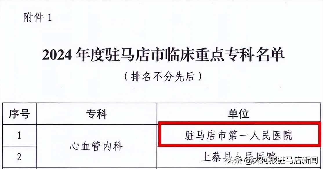 驻马店市第一人民医院:新增5个驻马店市临床重点专科