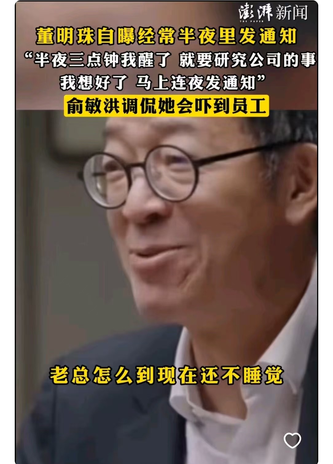 到了公司,被批评是肯定的。俞敏洪对于董明珠的爆料很不理解,他直接反问董明珠,您这是让员工睡觉睁只眼盯群聊?