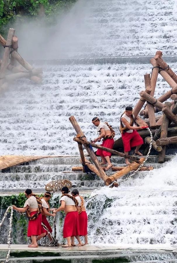 演员表演砍杩槎放水 图片源自新华每日电讯