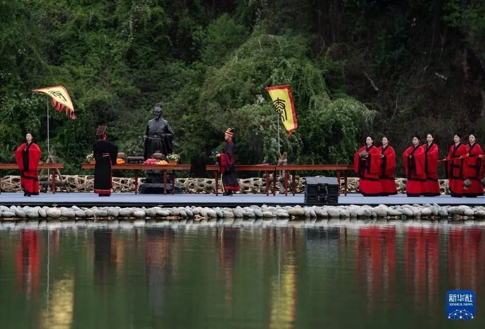 2024都江堰放水节上,主祭人向李冰塑像祭拜 图片源自新华社
