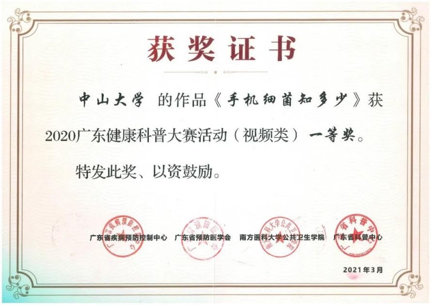 第二届全国大学生公共卫生综合知识与技能大赛+大学生健康教育科普作品大赛“优秀组织奖”