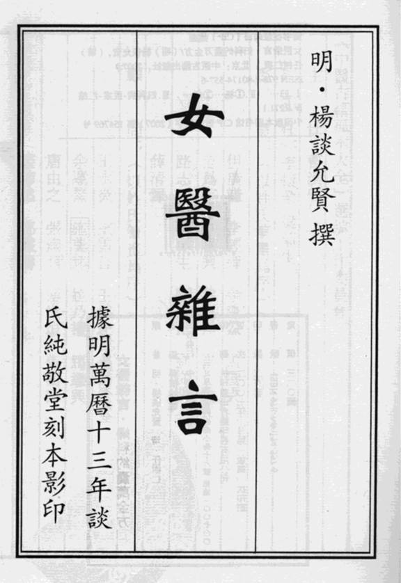 在她 50岁时,谈允贤忽然意识到应在有生之年将毕生掌握的医学知识记录下来。于是,她将祖母传授的医术结合自己多年的临床经验总结写成了《女医杂言》,该书共收载病案31例,是中医史上较早成书的个人医案之一。该书主要记载的是妇科病案,其中不仅涉及有关经病、流产、产后诸疾、腹中结块诸证,还记载了谈允贤对灸法十分娴熟的运用过程,因而《女医杂言》又是我国古代极罕见的专科医案书。