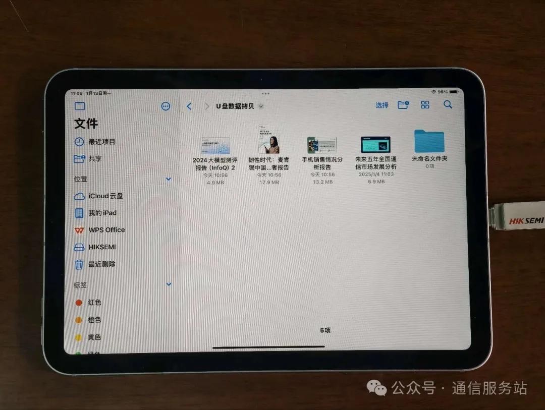 eSIM版iPad mini采用的是Type-C接口,可以直接插C口的U盘,直接读取,并进行文件复制移动删除等操作,这一点对办公来说非常方便。
