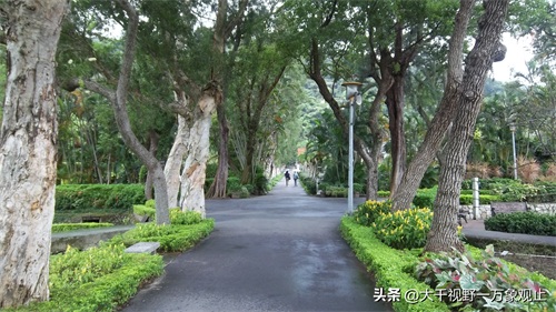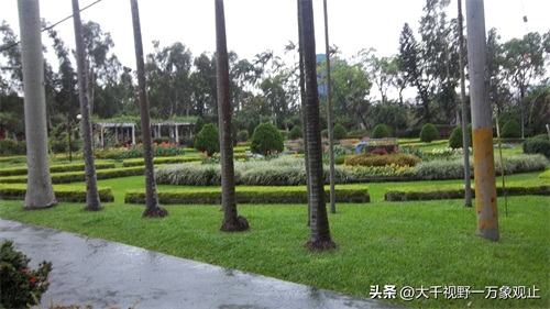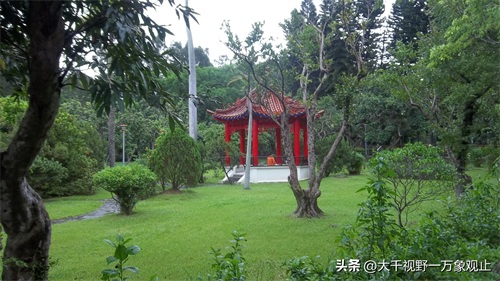 再往公园深处走。整个官邸的的美景尽收眼底,一眼望去古树夹道,到处繁花锦簇,树木苍翠,红柱凉亭与果木绿草相映成趣。公园内有兰花培植等四季交替的花卉,宋美龄喜爱的玫瑰园等园艺品种丰富,还有蒋介石夫妇喜欢的梅树,芒果杨桃等果树木。还有雨林植被,写意广场等各种生态园林设施。可以说是绿化应有尽有,目不暇接。