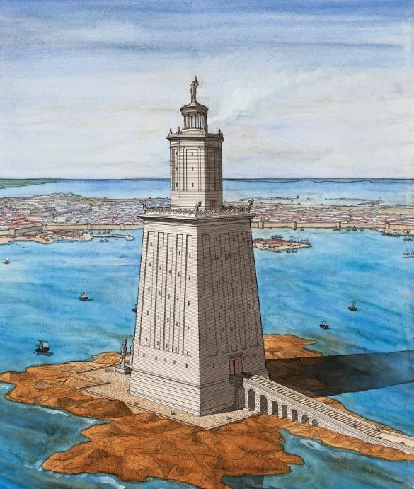 亚历山大灯塔:古代世界最高的建筑之一,为无数船只指引航向。它体现了人类对海洋的探索精神,以及他们在光学和建筑学上的智慧。