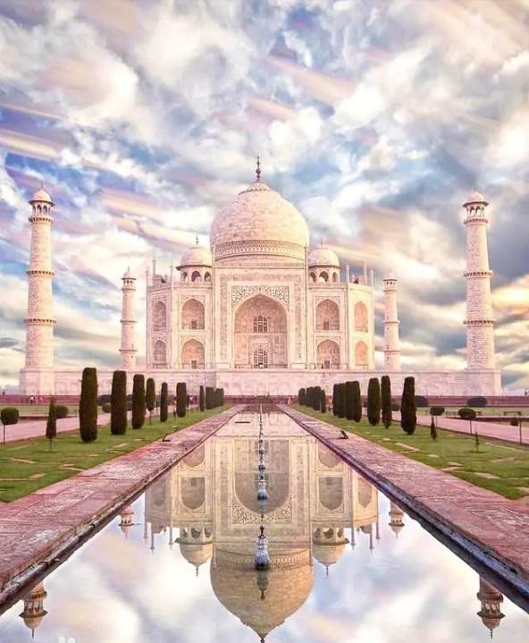 泰姬陵:印度莫卧儿帝国的瑰宝,是沙贾汗为爱妻建造的白色大理石陵墓。它体现了伊斯兰建筑艺术的精髓,以及印度文化中对爱情的颂扬。